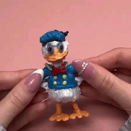 Once it hardens, carefully peel your artwork off the sheet. Assemble the different pieces… and watch your design come to life in 3D!